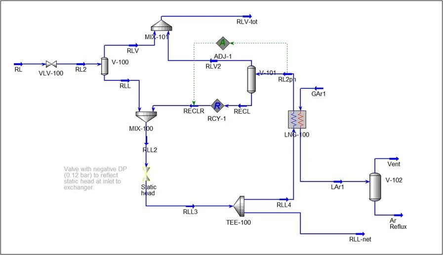 Rigorous and shortcut check calculations of the performance of a vendor’s thermosiphon reboiler designs can be done using standalone software in Excel. This is straightforward for pure component reboilers such as the ASU process’s main condenser-reboiler.